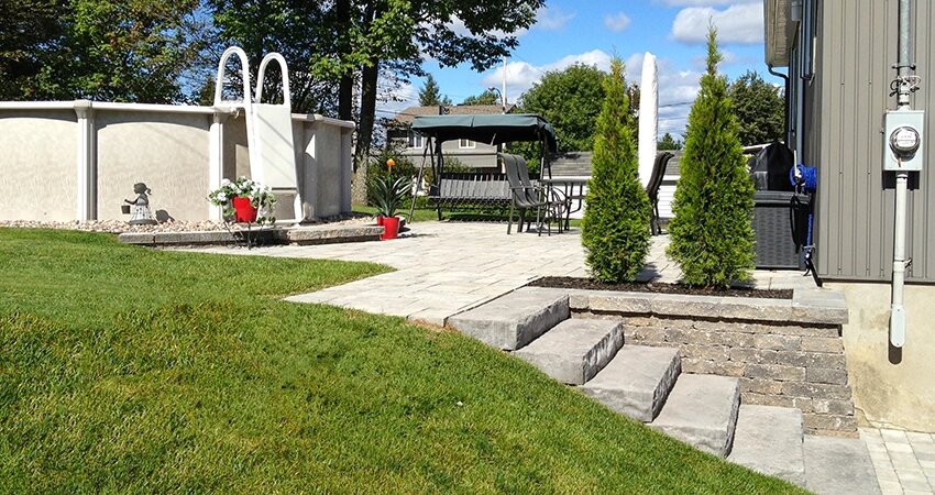 Nous réalisons une grande variété de projets : allées de stationnement, trottoirs, terrasses, marches, bordures, murets, murs de soutènement, foyers, ainsi que couronnements de piscines. Chaque projet est conçu pour répondre aux besoins uniques de nos clients.